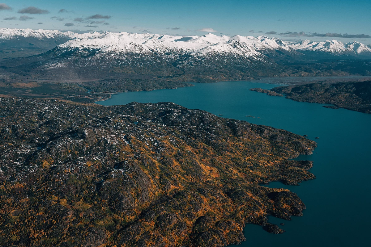 En route sur la « Glenn Highway », qui file au nord vers l’embouchure des rivières Matanuska et Knik. Vous longez le joli lac Mirror où débute la « Old Glenn Highway », que vous pourrez prendre jusqu’au village historique d’Eklutna. Sur ce site du premier campement indien Deda’ina, remontant à 1650, les églises orthodoxes en rondins et les « maisons spirituelles » colorées du cimetière adjacent, symbolisent les influences croisées Russo-Slave et Deda’ina Athabaskan. En atteignant Palmer, vous suivez vers l’est la rivière Matunaska, dont les berges se parent des feuillages colorés du tremble et du peuplier. Votre route est jalonnée de vues spectaculaires sur les crêtes argentées des montagnes Chugach. Vous stoppez pour observer le large glacier Matanuska strié de roches brisées, et peu après, à « Tahneta Pass », la Highway prend de l’altitude et votre regard s’ouvre sur de plus fastueuses perspectives à mesure que vous grimpez jusqu’à « Eureka Summit ». Vous commencez à apercevoir à l’horizon la chaîne Wrangell, et les capricieux lacets de la rivière Tazlina, alimentée par le très beau lac glaciaire éponyme, vous escortent jusqu’à Glennallen.
