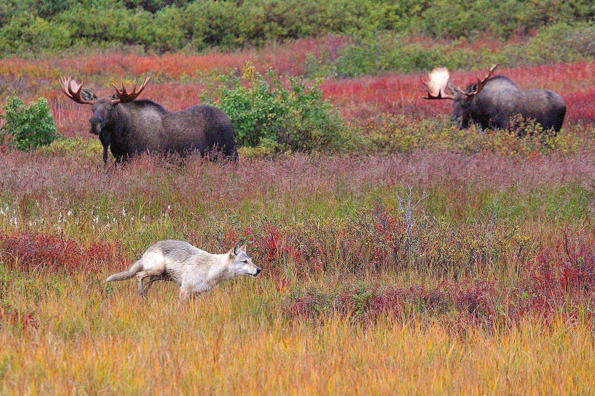 Aujourd’hui, possible excursion guidée en bus, sur l’unique route qui s’enfonce jusqu’au coeur du parc, et rejoint la petite communauté de Kantishna au bout de 148km. Un périple d’environ 6 heures, à travers les paysages subarctiques peuplés d’animaux incroyables, que vous ne manquerez pas d’observer régulièrement en bordure de la route. Les troupeaux de caribous paissent sur les immensités de la toundra. Les surprenants mouflons blancs de Dall jouent les équilibristes sur les crêtes juste au-dessus du bus, tandis que les grizzlis se gavent de baies sucrées dans les prairies qui bordent Sable Pass, à 1187 mètres d’altitude. De loin en loin, des haltes sont aménagées pour admirer le panorama grandiose sur la chaîne Alaska, dont certains glaciers dévalent ses pentes jusqu’à la route, tel le colossal « Muldrow glacier ». Avec un peu de chance, vous croiserez des loups, à l’affût d’une proie potentielle, mais vous observerez assurément des orignaux, très souvent présents dans les étangs ou aux abords des lacs, comme le « Wonder Lake », votre dernière étape avant Kantishna. De là, vous embarquez à bord d’un petit avion-taxi et revenez à votre point de départ en survolant les paysages infinis du parc, et les magiques entendues glacées de la chaîne Alaska. Une expérience inouïe que vous n’êtes pas prêts d’oublier !