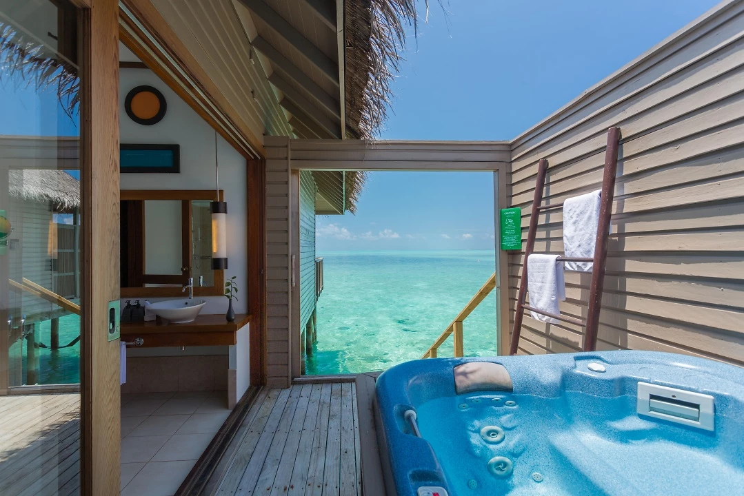 Meeru Island Resort, villa pilotis avec jacuzzi