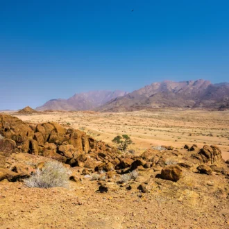Départ matinal en direction du Damaraland. Arrêt possible à la forêt pétrifiée, site classé monument national en 1950, regroupant d’énormes troncs d’arbre fossilisés, âgés de plus de 250 millions d’années. Arrivée au lodge. Réservez une excursion en véhicule 4×4 organisée par le lodge pour voir les paysages du Damaraland. Avec de la chance et selon les saisons (en général en dehors de la saison des pluies) possibilité de voir des éléphants du désert. Nuit au camp.