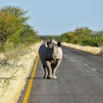Départ avec les véhicules 4 x 4 vers la porte Est, coté Namutoni pour une matinée de safari dans le parc national d’Etosha. Ce « grand espace blanc » tire son nom d’Etosha Pan (signifiant point d’eau asséché), vaste dépression, à l’origine mer intérieure devenue lac desséché, il y a environ 12 millions d’années. Etosha offre sans conteste l’un des plus beaux tableaux de la vie sauvage au monde. Il embrasse plus de 20 000 km2 où vivent 114 espèces de mammifères et quelques 340 variétés d’oiseaux, dont un tiers sont des migrateurs, et 110 espèces de reptiles. Déjeuner au lodge puis nouveau safari dans le parc au travers des paysages variés. Nuit au lodge.