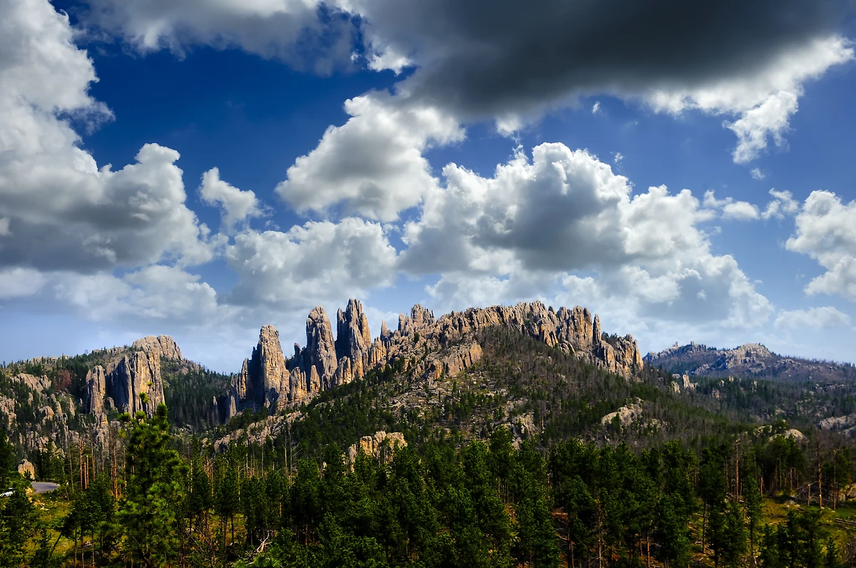 Vous quittez aujourd’hui le Dakota du Nord pour entrer au Dakota du Sud en empruntant la « Theodore Roosevelt Expressway », qui file tout droit après Belfield sur plus de 300 kilomètres à travers les grandes plaines jalonnées de quelques bourgades perdues, de stations-service isolées et d’épiceries d’un autre âge. Arrêtez-vous enfin à Spearfish, porte d’entrée des fameuses « Black Hills », et visitez le « High Plains Western Heritage Center » afin d’admirer de splendides collections d’objets Western et d’artefacts amérindiens. Découvrez ensuite le nord des « Black Hills » en sillonnant les routes panoramiques, comme la « Spearfish Canyon Scenic Byway » qui serpente le long du torrent Spearfish, bordé de hautes façades rocheuses et ponctué de cascades où abondent les truites sauvages. Ce spectaculaire itinéraire jalonné de points de vue époustouflants et de nombreux sentiers bucoliques, vous mène à Lead, dont la mine est réhabilitée en musée, puis à Deadwood, qui conserve une saveur Western, avec ses bâtiments du centre historique en pierre et brique rouge, aux façades plates et lignes de toit ornées.