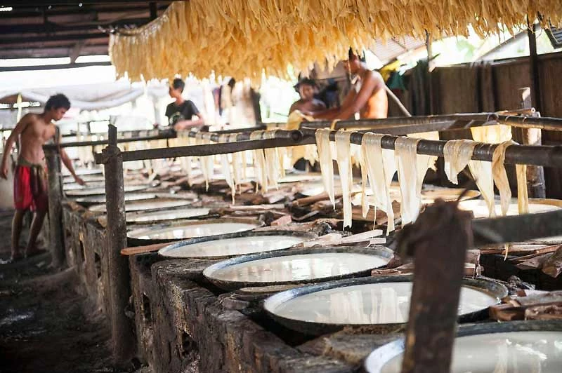 Visite des villages aux alentours de Battambang en tuk tuk pour découvrir comment les villageois subviennent à leurs besoins quotidiens. Selon la saison, vous pourrez découvrir la fabrication des galettes de papier de riz pour la préparation des rouleaux de printemps, du « Prahoc » pâte de poisson et du « krolan », riz cuit dans du bambou. Tout au long de l’excursion, vous pourrez vous joindre aux villageois pour goûter certains de ces produits. Visite de l’école de cirque Phare Ponleu Selpak, une association Cambodgienne qui relie culture, éducation et action sociale. L’après-midi, découverte du village de Vat Kor, reconnu comme un village culturel pour ses charmantes anciennes maisons en bois datant du début du XXe siècle. Vous pourrez découvrir les galeries d’art de la ville. Possibilité avec supplément de vivre une expérience en bamboo train, ou encore de découvrir la cuisine locale en soirée. Nuit à l’hôtel.