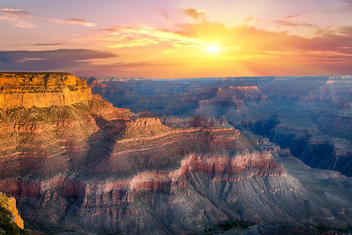 La Route 66 originale s’offre à vous sur une portion mythique qui traverse la réserve indienne Hualapai et croise la petite ville de Seligman où les bâtiments semblent être figés dans le temps, à l’âge d’or de la route. A Williams, vous bifurquez vers nord et traversez la belle forêt de Kaibab qui cache le Grand Canyon. Creusée par l’érosion millénaire du Colorado, cette cicatrice béante rouge feu constitue un livre ouvert sur l’histoire géologique de la Terre.