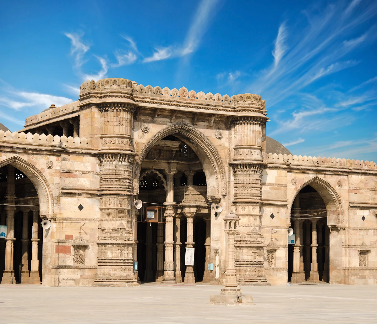 Arrivée à Ahmedabad dans la nuit, accueil par notre représentant et transfert à l’hôtel pour le reste de la nuit. Visite de la ville, fondée au XVe siècle, avec sa mosquée de Sidi Saiyed, réputée pour sa décoration riche et élaborée. Visite de l’ashram de Gandhi, situé sur les rives de la rivière Sabarmati, qui fut l’une des résidences de Mohandas Karamchand Gandhi. Visite du temple jain de Hathi Singh, qui renferme de superbes sculptures murales représentant le Tirthankara et autres saints. Puis, visite du Musée de Calicot, premier musée du textile du pays avec une remarquable collection retraçant 500 ans de traditions de textile venues de toute l’Inde. Visite du plus beau puit ancien du Gujarat, l’Adalaj Vav. C’est un puit en escalier où l’on accède jusqu’au niveau de l’eau par cinq étages. Les piliers, les balcons, les murs creusés de niches sont décorés de motifs géométriques ou floraux et de frises d’éléphants. Nuit à l’hôtel.