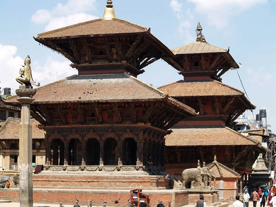 Départ pour la visite de Patan qui a repris son nom d’origine, Lalitpur. Son cœur historique est un enchevêtrement de petites ruelles bordées de maisons de briques aux balcons de bois sculpté et décors de bronze, cours et arrière-cours abritant oratoires et temples. La ville est réputée pour son artisanat de statues en bronze représentant le panthéon hindou. Rencontre avec un maître des « bols tibétains chantants ». Continuation pour Bouddha Nath, le plus grand stupa au monde. Sa base octogonale est agrémentée de centaines de moulins à prière renfermant les paroles sacrées (Om mane padme um) qu’actionnent les pèlerins sur leur passage. Les yeux de Bouddha peints aux quatre coins cardinaux posent un regard éternel sur les hommes et leurs actions. L’après-midi, visite du Durbar Square, siège de la royauté. On y trouve le temple Taleju, la gigantesque statue de Kal Bhairab, le palais de Basantapur et le temple de Jagannath réputé pour ses sculptures érotiques, la maison de Kumari, seule déesse vivante au monde. Promenade dans le vieux quartier d’Ason jusqu’à Thamel. Nuit à l’hôtel.