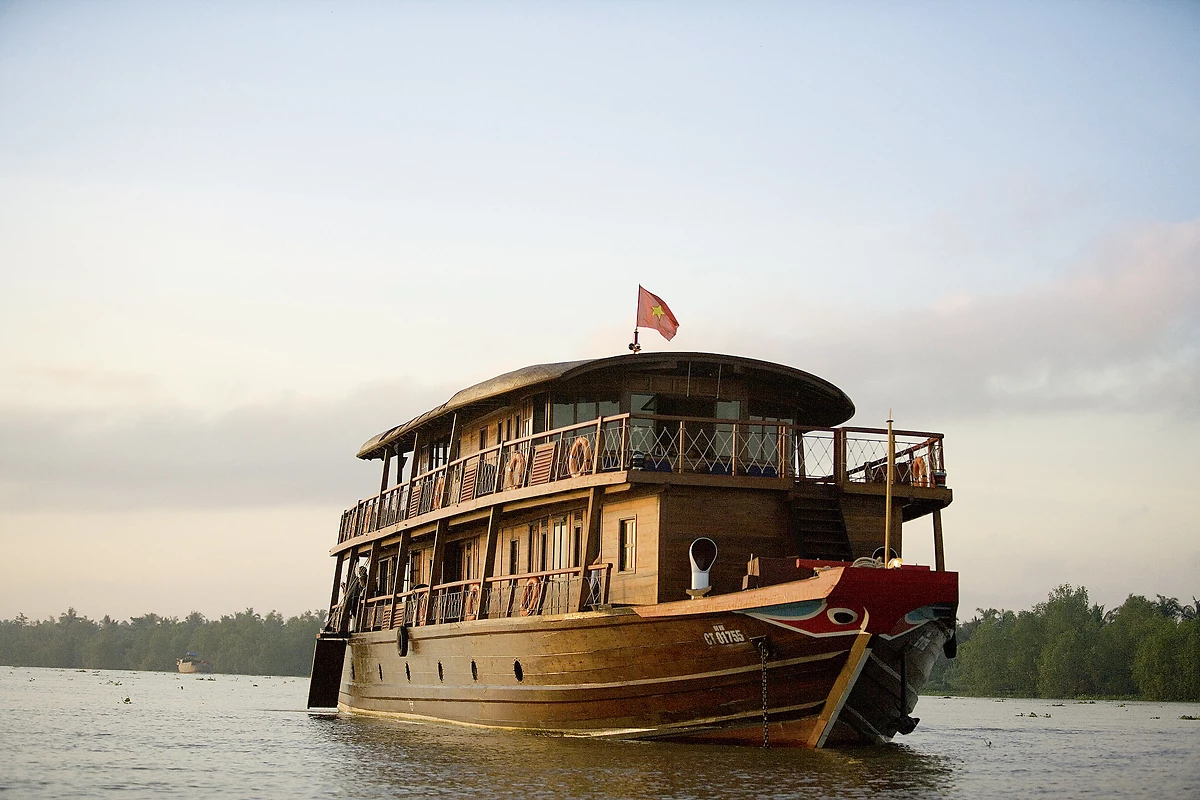 Route sans guide vers Cai Be. Vous embarquerez vers midi à bord du Bassac. Après un verre de bienvenue et une présentation du bateau et de l’équipage, vous vous installerez dans votre cabine pour vous rafraîchir. Alors que le bateau s’engagera dans le canal Nicolai, le déjeuner sera servi à bord. Vous aurez tout le loisir de vous détendre sur le pont supérieur et d’observer le trafic fluvial, et la vie le long du fleuve. En milieu d’après-midi, le bateau jettera l’ancre et vous pourrez descendre pour explorer et découvrir les rizières, des vergers d’arbres fruitiers et la vie de la campagne du delta en ayant l’opportunité de rencontrer les locaux ou profiter d’une courte balade à vélo. Vous regagnerez le bateau pour profiter du coucher de soleil sur le pont supérieur ou au bar. Le dîner sera servi à bord et le Bassac jettera l’ancre à Tra On pour la soirée et la nuit. Nuit à bord.