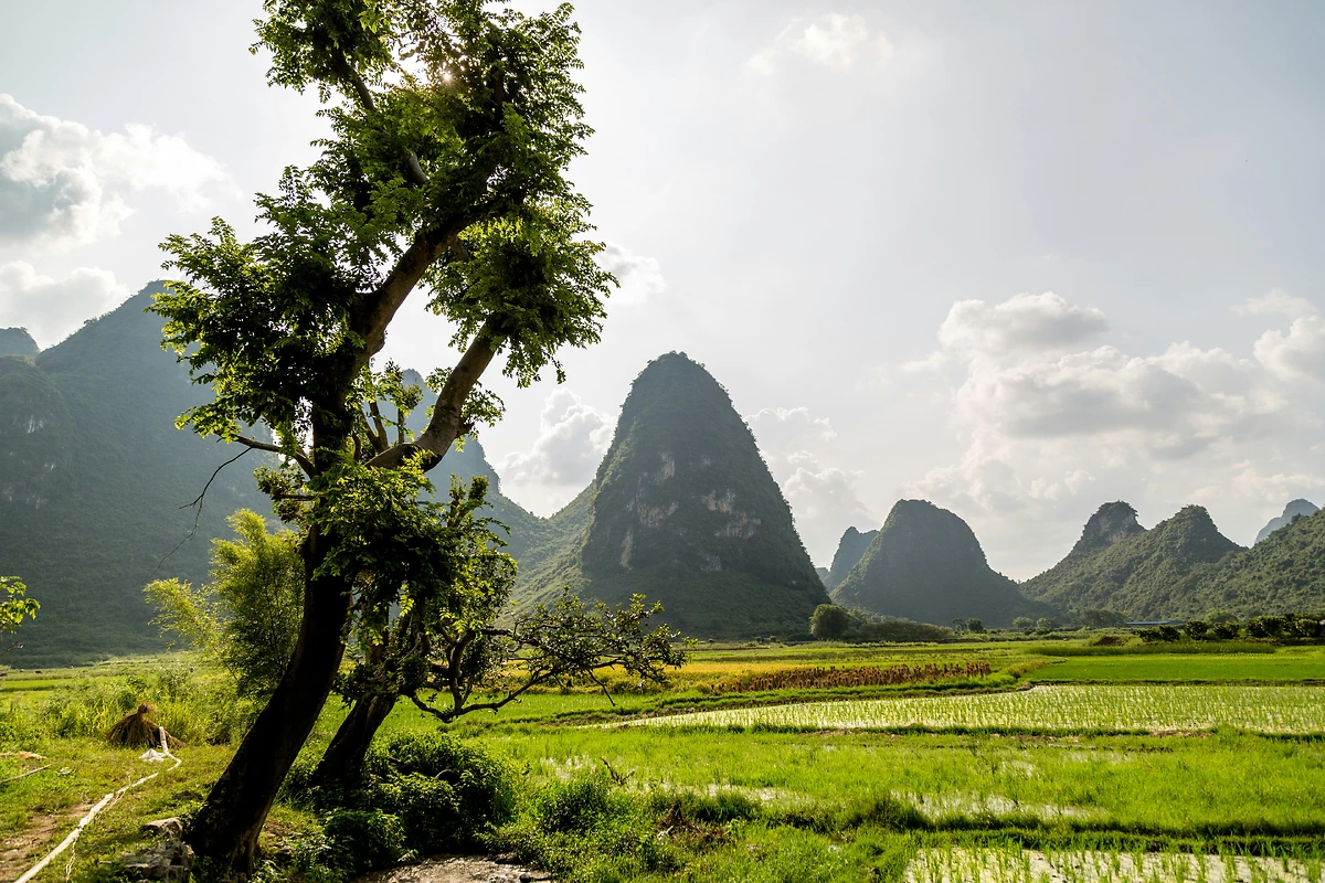 Nous commençons par une croisière en bateau entre Guilin et Yangshuo. C’est l’une des dix plus grandes merveilles aquatiques du monde. Outre les rochers difformes qui semblent surgir de nulle part, les rizières luxuriantes vous rappellent que ce rythme de vie langoureux le long de la rivière existe depuis des siècles. Arrivés à Yangshuo, vous ferez une promenade à vélo dans la campagne pour découvrir les différents groupes ethniques qui vivent dans cette région. Transfert à l’hôtel. Nuit à l’hôtel.