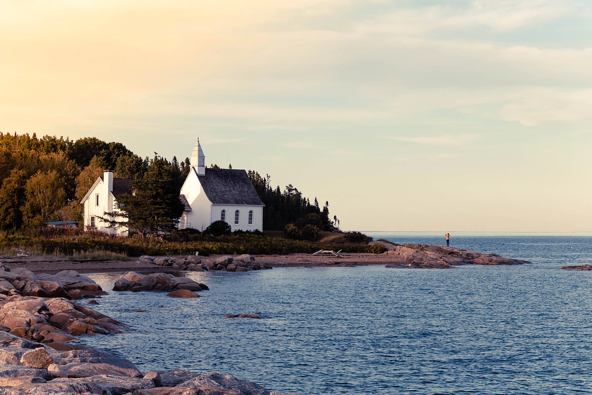 La route panoramique 362 est sans nul doute la plus remarquable du littoral de Charlevoix. Elle serpente et s’accroche aux replis de la côte en croisant de coquets villages, qui jouissent de vues à couper le souffle sur le Saint-Laurent. Saint-Irénée-les-Bains, Les Eboulements et Saint-Joseph-de-la-Rive sont les trois petites bourgades immanquables de ce magnifique itinéraire au charme intemporel, que nombre d’artistes en quête d’inspiration parcourent depuis le XIXe siècle. Partez à la découverte de l’Isle aux Coudres, abordée en 1535 par Jacques Cartier et baptisée ainsi en raison des nombreux coudriers ou noisetiers qu’il trouva sur place. Petit bijou de campagne bucolique et de chemins champêtres, qu’il est très facile de sillonner à vélo, l’île est un très couru havre de paix, posé nonchalamment sur le fleuve, et relié par traversier à Saint-Joseph-de-la-Rive. Vous apprécierez la quiétude et l’élégance surannée des lieux, tout en respirant un bon bol d’air salin, face à un magique coucher de soleil.