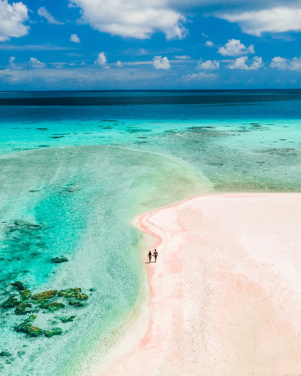 Promenez-vous le long des plages de sable rose et baignez-vous dans les eaux transparentes.