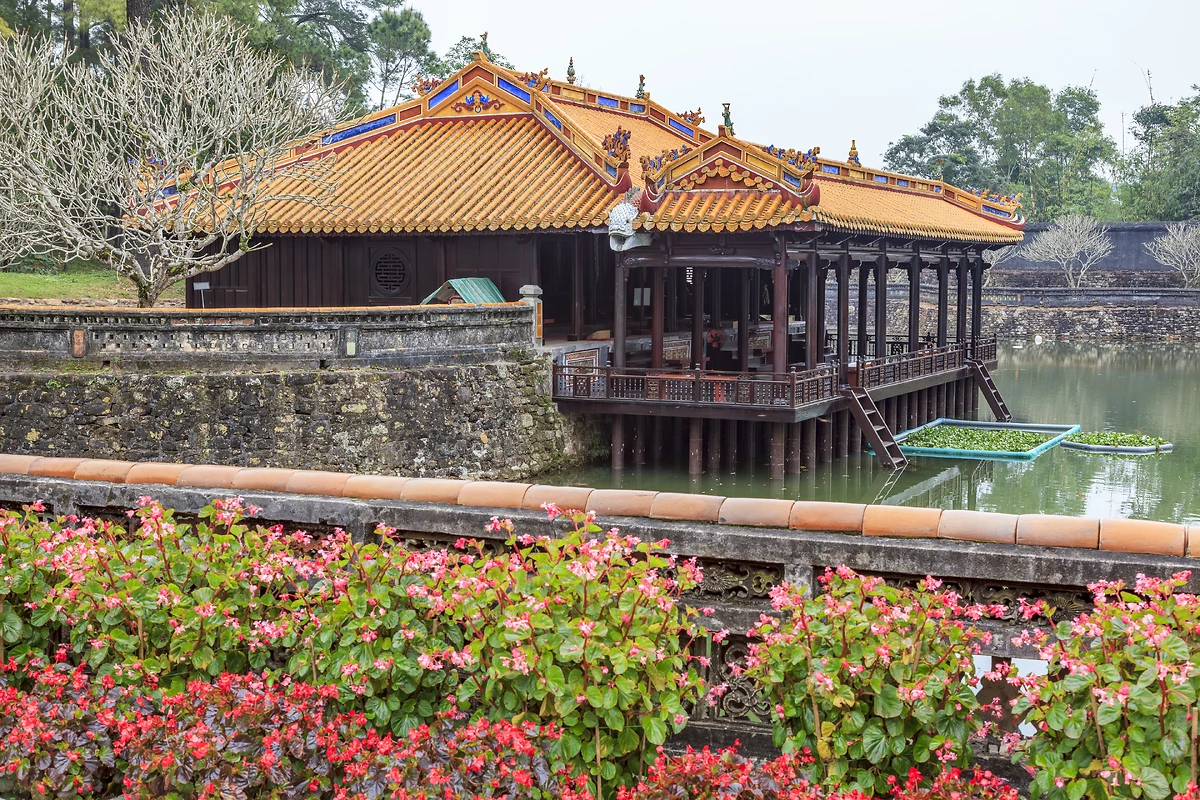 Visite du tombeau de l’Empereur Tu Duc, un des plus beaux sites de Hué, qui respire la quiétude et constitue un modèle d’art vietnamien traditionnel. Ce sera aussi l’occasion d’apprendre à connaître l’histoire de la dynastie des Nguyen et de l’invasion coloniale française. Vous visiterez ensuite une charmante maison-jardin qui raconte l’histoire de la rivière des Parfums. Déjeuner de spécialités locales cuisinées de manière traditionnelle par une famille. L’après-midi, vous visiterez la Citadelle Impériale, remarquable par son allure de forteresse retranchée en plein cœur de la ville. Le soir, profitez d’un dîner-croisière privé sur la rivière des Parfums en profitant de la musique traditionnelle de Hue. Nuit à l’hôtel.