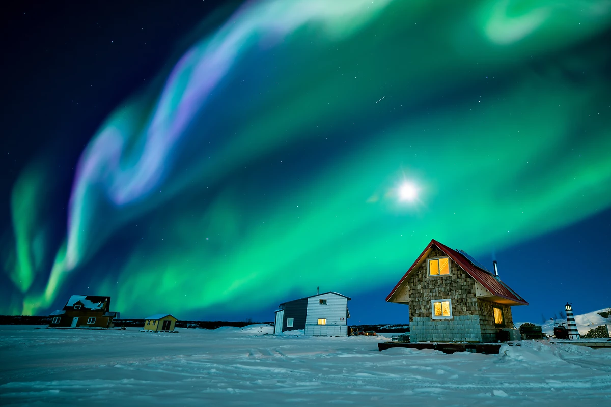 Jouissant d’une situation géographique idéale (sous l’ovale des précipitations!), les Territoires du Nord-Ouest font partie des endroits tout indiqué pour y observer les aurores boréales à coup sûr en hiver. Embarquez à bord d’un avion de brousse et rejoignez votre lodge au bord d’un immense lac gelé pour y vivre une expérience inoubliable et unique. Lieu magnifique que vous explorez grâce aux activités de plein-air en journée, il est le théâtre qui accueille la danse de ces Northern Lights pendant la nuit, vous laissant les yeux pleins d’étoiles.