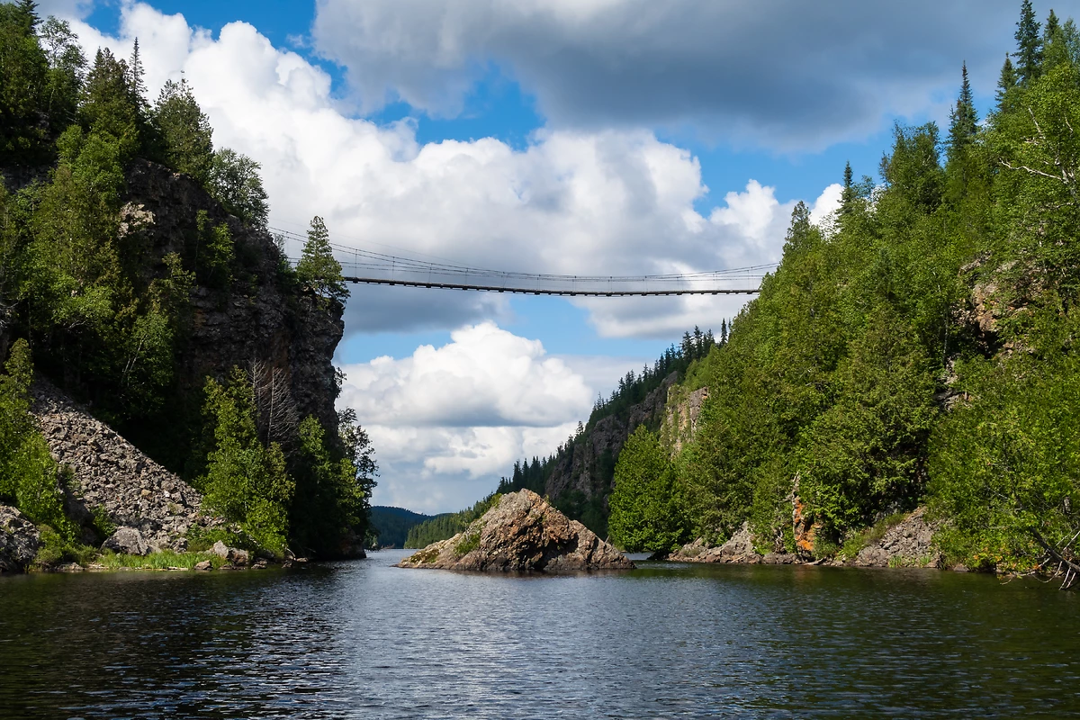 Journée complète à la découverte de ce merveilleux parc, véritable concentré de nature souveraine. Des kilomètres de sentiers parcourent les forêts touffues de ce territoire éminemment sauvage et décuplent vos chances d’apercevoir une faune abondante, dont la gélinotte huppée, l’ours noir, le castor, l’orignal et le lynx du Canada sont les magnifiques représentants. Vous pouvez également opter pour une excursion en kayak sur le splendide lac Loïs, réputé pour ses nombreuses îles et multiples baies, où vous pourrez faire halte et y observer une faune aquatique variée, comme l’amusante loutre des rivières. Si vous ne grimpez pas au sommet du Mont Dominant pour une vue imprenable sur les collines Abijévis, empruntez l’escalier hélicoïdal courant le long d’un escarpement vertigineux sur le sentier « Les Paysages », ou la fameuse passerelle suspendue, longue de 64 mètres, qui surplombe de 22 mètres les eaux du lac Lahaie sur le sentier « La Traverse ».
