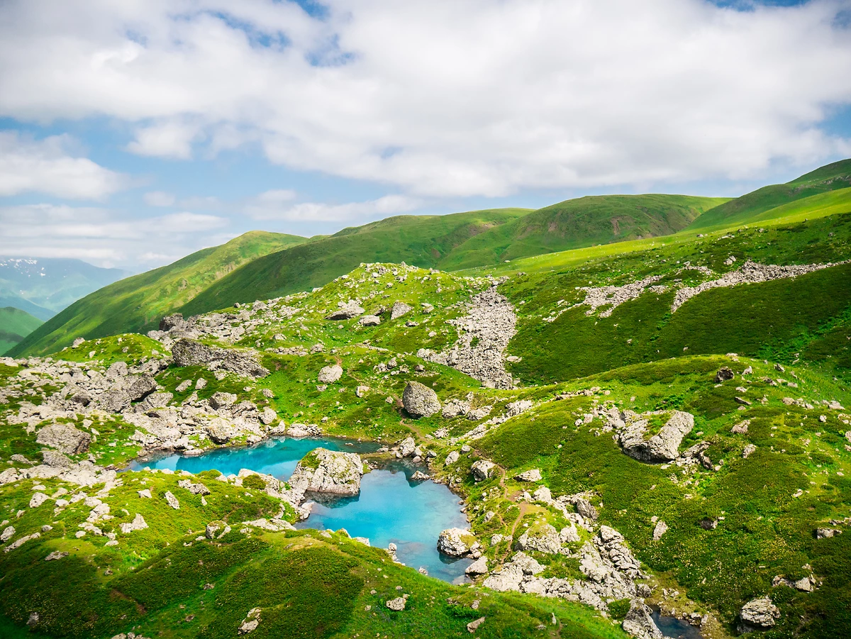 Faites une randonnée jusqu’aux lacs d’Abudelauri, de petits lacs de montagne froids et colorés.