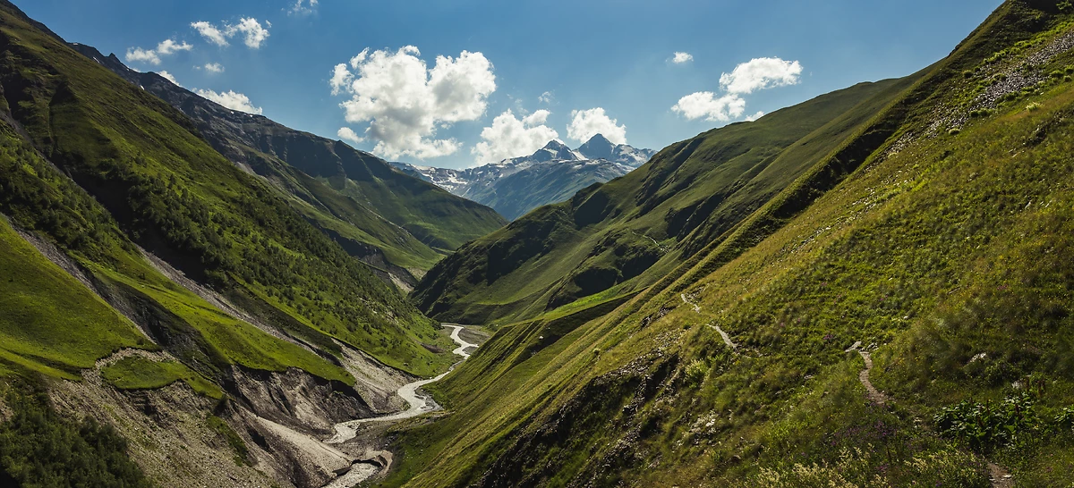 Partez par la route militaire pour rejoindre les montagnes du Grand Caucase. La combinaison de champ verts, de prairies alpines, de rivières scintillantes et de hautes montagnes crée une atmosphère mystique qui ne laissera personne indifférent.