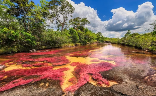 Découvrez « la plus belle rivière du monde » qui arbore entre septembre et novembre, après la saison des pluies, ses plus belles couleurs : jaune, bleu, vert, noir et rouge, en raison de la présence d’algues endémiques.