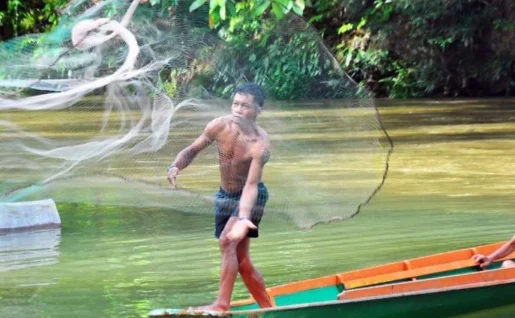 Notre voyage vers Batang Ai traverse une campagne composée de petites villes pittoresques, de villages, de rizières, de plantations de poivre et de palmiers à huile entrecoupées de jungle vierge. En partant le matin, nous nous arrêterons au bazar de Lachau pour parcourir les boutiques locales et le petit marché. Notre voyage se poursuivra jusqu’au lac Batang Ai Hydro où nous monterons à bord d’une chaloupe et remonterons la rivière jusqu’à Nanga Sumpa, ce qui prend environ deux heures en fonction des conditions de la rivière. Installation au lodge. Le soir, nous visiterons la Longhouse Nanga Sumpa où vous pourrez vous relaxer sur le ruai (véranda) avec la minorité ethnique Iban locale qui vous fera découvrir sa culture et déguster du vin de riz local. Déjeuner en cours de route dans un restaurant local. Dîner et nuit au lodge.