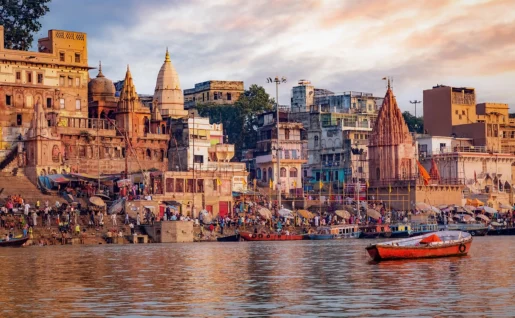 Visite des temples de Khajuraho. Le paisible village de Khajuraho est renommé pour ses temples hindous en grés. Ils furent édifiés sous la dynastie Chandela et datent pour la plupart des Xème et XIème siècles. Ces temples sont considérés comme un des joyaux de l’art indo-aryen grâce aux sculptures superbement ouvragées. Ils relatent des scènes de la vie quotidienne au premier millénaire : mythologie, Panthéon hindou, animaux et guerriers, les sculptures érotiques étant les plus connues. Les avis sont partagés quant à la signification de cet érotisme: tantôt une illustration du Kama Sutra, ou alors une façon de protéger les temples de la colère du Dieu de la pluie Indra, ou encore, hypothèse plus convaincante, des images tantriques. Transfert à l’aéroport et envol vers Varanasi, A l’arrivée, transfert et installation à l’hôtel. Varanasi, la ville de Shiva, est considérée comme une des plus sacrées de l’Inde. Cette ville sainte est baignée depuis plus de 2000 ans par les eaux du Gange où les pèlerins viennent se baigner pour se laver de leurs péchés. Les ghâts (escaliers descendant vers le Gange) sont le théâtre des puja (cérémonies d’offrandes) quotidiens, du lever au coucher du soleil, réalisés par les prêtres et les fidèles. D’innombrables Sadhus arpentent les abords du fleuve afin de distribuer leur bénédiction et recevoir des offrandes. En fin d’après-midi, vous assisterez à la cérémonie d’Aarti sur les Ghats. Nuit à l’hôtel.