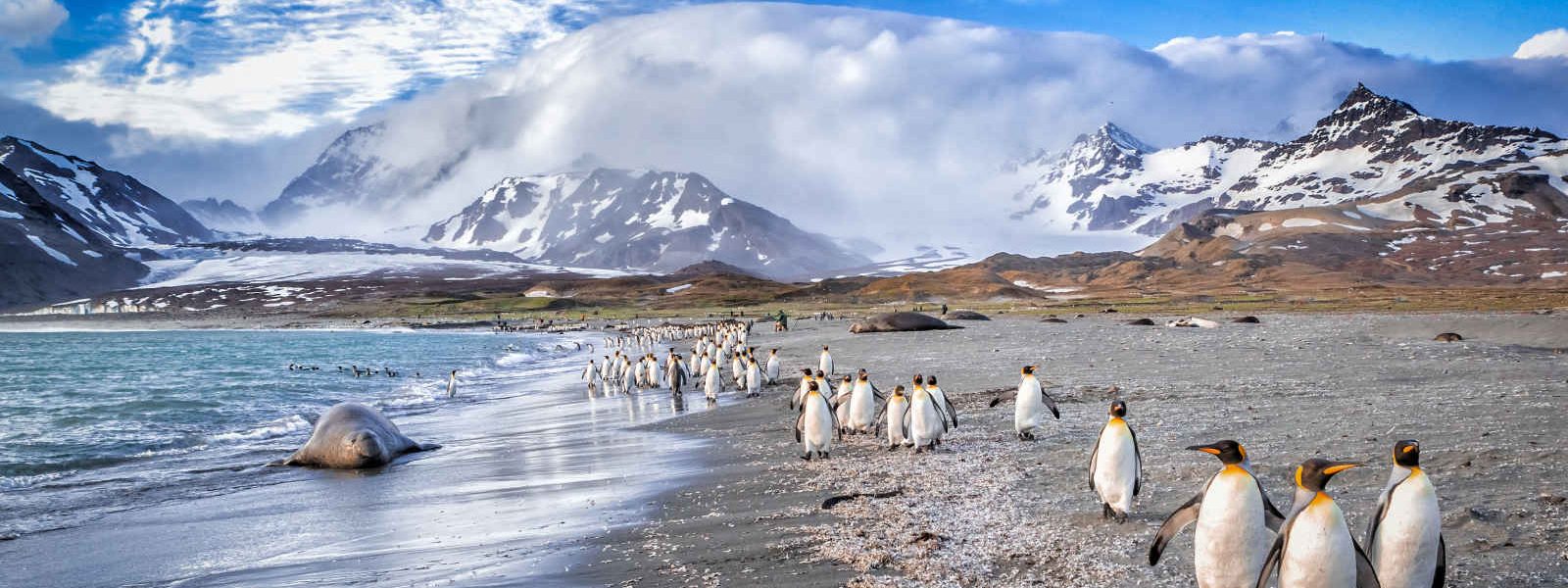 C'est une plongée dans le XIXe siècle qui vous attend en Géorgie du Sud, celui des conquérants et des immenses navires de pêche. Cette petite île britannique située dans l'Océan Antarctique a longtemps abrité des stations baleinières norvégiennes, et c'est toute cette histoire que porte encore la petite ville pittoresque de Grytviken : l'alambic clandestin exposé au musée South Georgia, l'église du Chasseur de Baleines, les anciennes citernes d'huile... Une société humaine qui se fait aujourd'hui très modeste face à la puissante majesté de la nature, puisque l'île est surtout célèbre pour sa faune et sa flore préservée, abritant les plus grandes colonies mondiales d'éléphants de mer et quelque 30 millions d'oiseaux nicheurs !