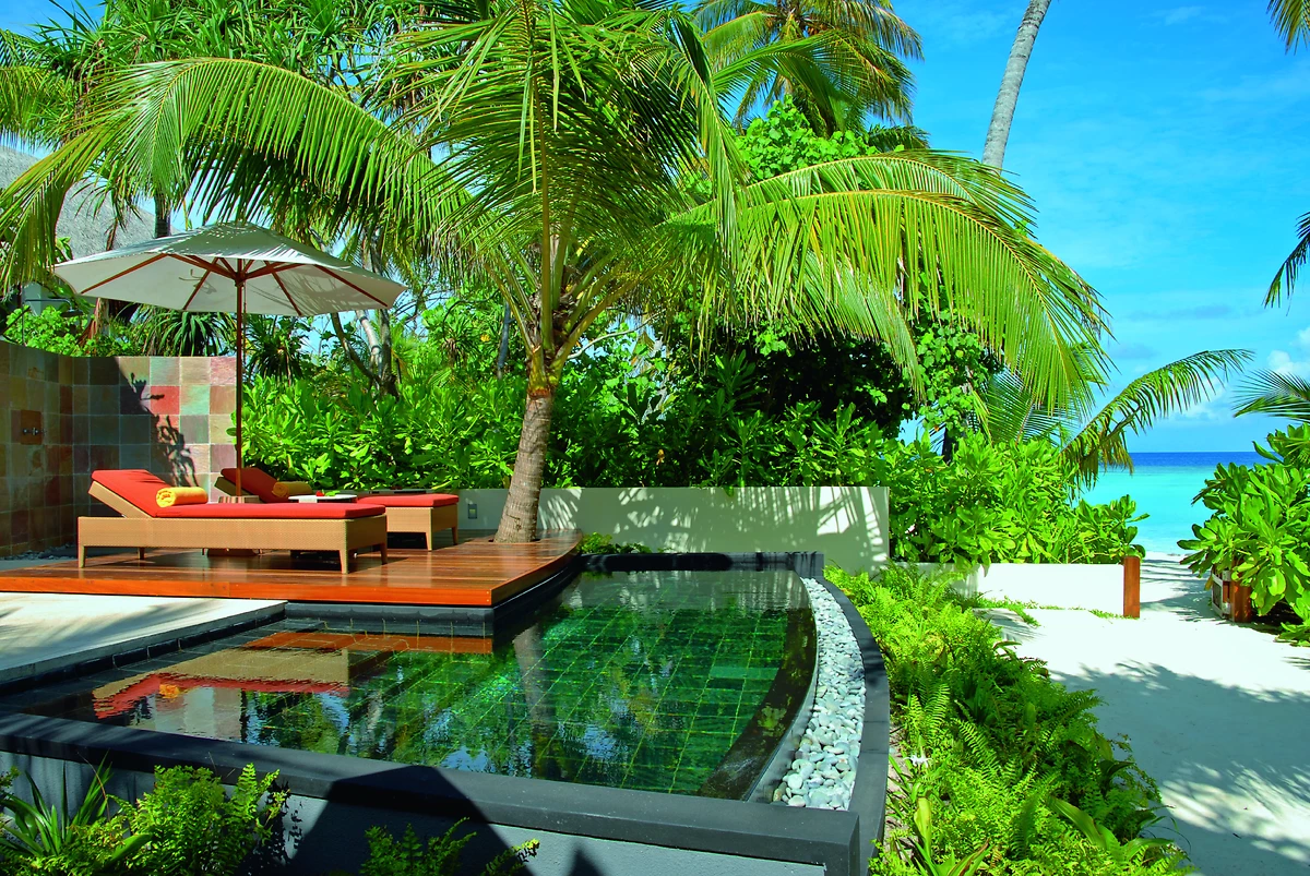 86 villas dont l’architecture s’inspire des Dhonis maldiviens, avec piscine privée, télévision, WiFi (gratuit).