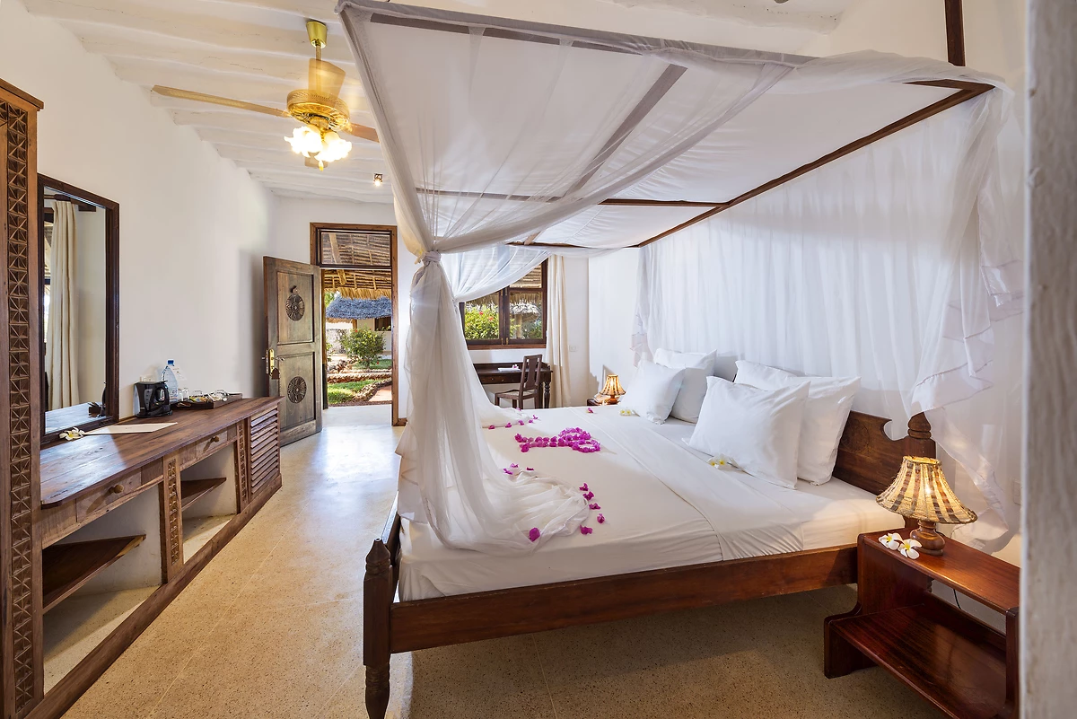 L’hôtel dispose de bungalows décorés dans un style traditionnel d’Afrique de l’Est. Tous sont équipés de climatisation, véranda, salle de bains avec douche à l’italienne.