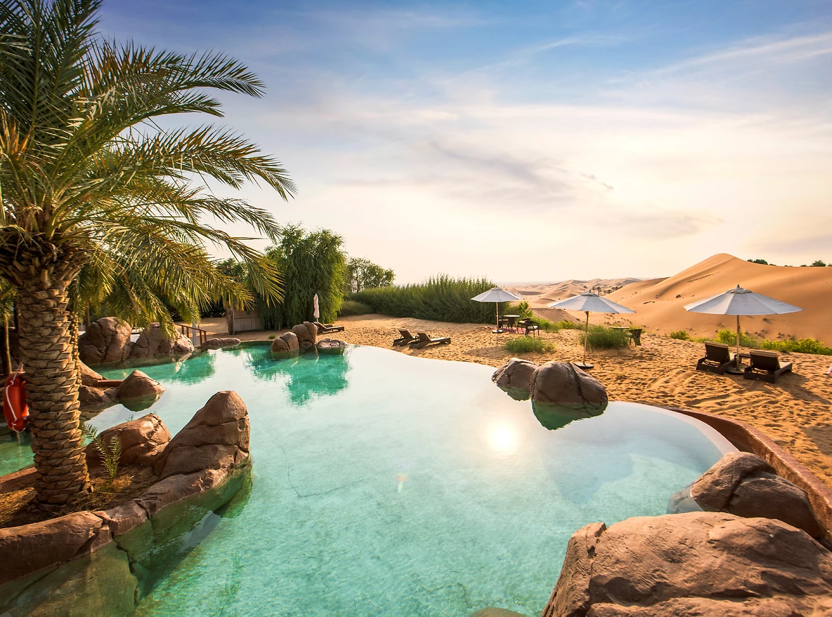 Situé dans le désert de Remah, à mi-chemin entre Abu Dhabi et Al Aïn, le Telal Resort vous propose de séjourner dans une villa-tente rappelant l’esprit Safari. Entre amis, en famille ou à deux, profitez d'une escapade inoubliable au Emirats Arabes Unis.